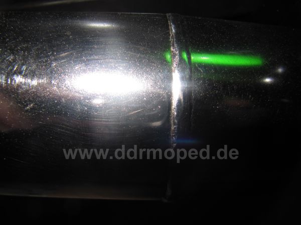 Den Auspuff hatte ich vor 2 Jahren von einem Bekannten aus dem Westen bekommen. Der hat von Simson eigentlich keine Ahnung. Den NEUEN Auspuff muss er ja anscheinend jahrelang unter vernünftigen Bedingungen gelagert haben, denn anders kann man sich den Zustand nicht erklären. Ich war mir aber nie sicher, ob es auch ein Originaler ist.