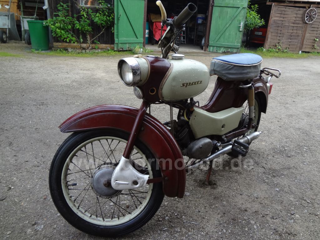 Auf den ersten Blick ist der Benzinhahn, Rücklichtkappe und der Kupplungsgriff mit Überzug falsch.Der Gepäckträger wurde einfach eine Lochreihe höher montiert. Der Nabendeckel ist beim Spatz immer so.Der stimmt also. Pedale stimmen auch.