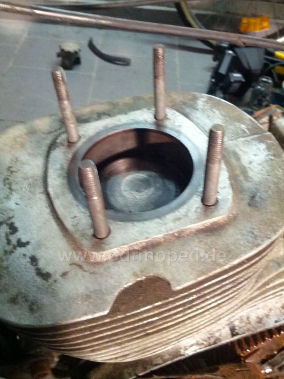 Zylinder sieht innen arg rostnarbig aus, kann man auf dem Foto aber schlecht einschätzen, wie tief die Rostnarben sind. Sieht irgendwie aus, als ob in dem ganzen Motor längere Zeit Wasser drin war. Im 2013 Junihochwasser abgesoffen, von wo hast du Maschine? Wenn du den Zylinder ausschleifen lässt, ich würde es wahrscheinlich so machen, erledigt sich auch die Sache mit dem Kolben.
