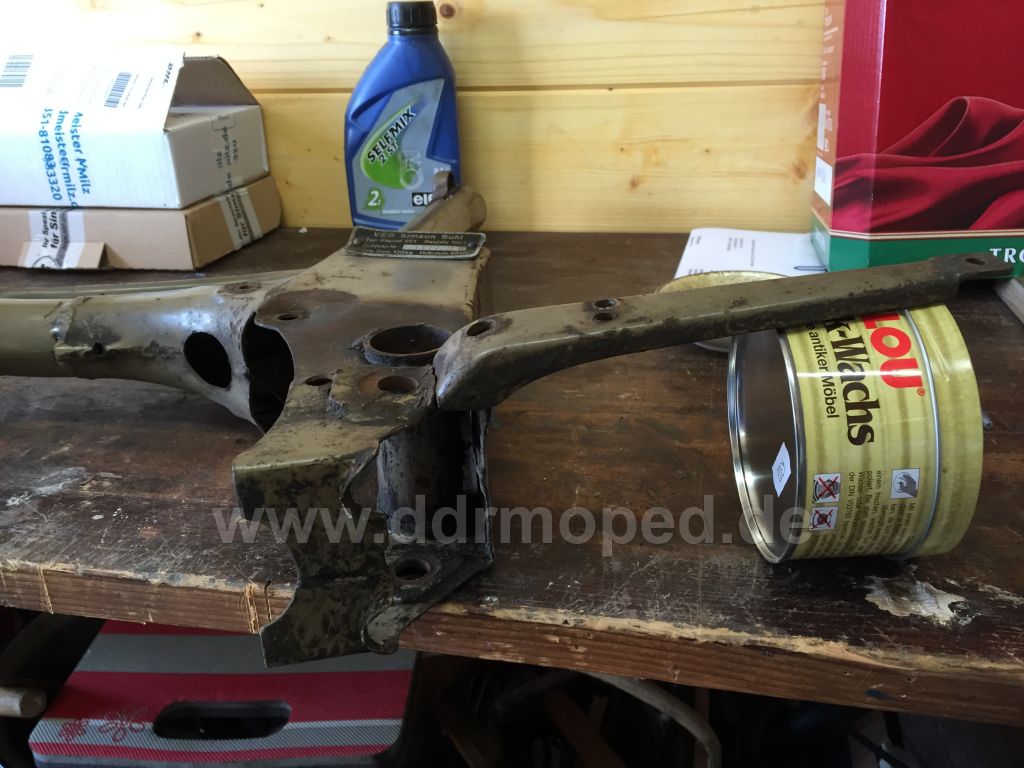ich habe nun wieder etwas Zeit und möchte meinen zerlegten 1er neu aufbauen der bei mir schon seit eingen Jahren in Teilen liegt. Die orginalen armaturen und die Räder habe ich schon vor langer zeit fertig gemacht. Aber jetz soll es richtig losgehen. Ich habe dieser Tage mal die ganzen Sachen raugesucht, und da ist mir aufgefallen das an dem Rahmen die Auspuffhaltestrebe aussieht wie bei einem SR2. Es handelt sich um einen 57er mit Nummer 1477xx. War das so da es vielleicht in der Übergngszeit zum 2er war?