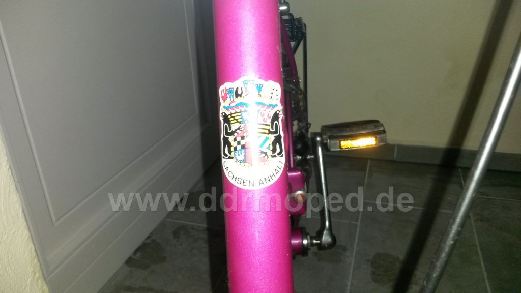 Interessant, das wird von Ende 1990 oder Anfang 1991 sein. Mir sind auch schon Räder unter völlig anderem Markennamen begegnet, bei denen es sich vom Rahmen her offensichtlich um Mifa-Räder nach DDR-Baumuster handelte und die den Bauteilen, der Rahmennummer und Farbgerstaltung zufolge aus der Zeit um 1990/91 stammten. Dass es davon auch noch Klappräder gab, ist aber neu. Das können nicht mehr viele gewesen sein, die so produziert wurden.