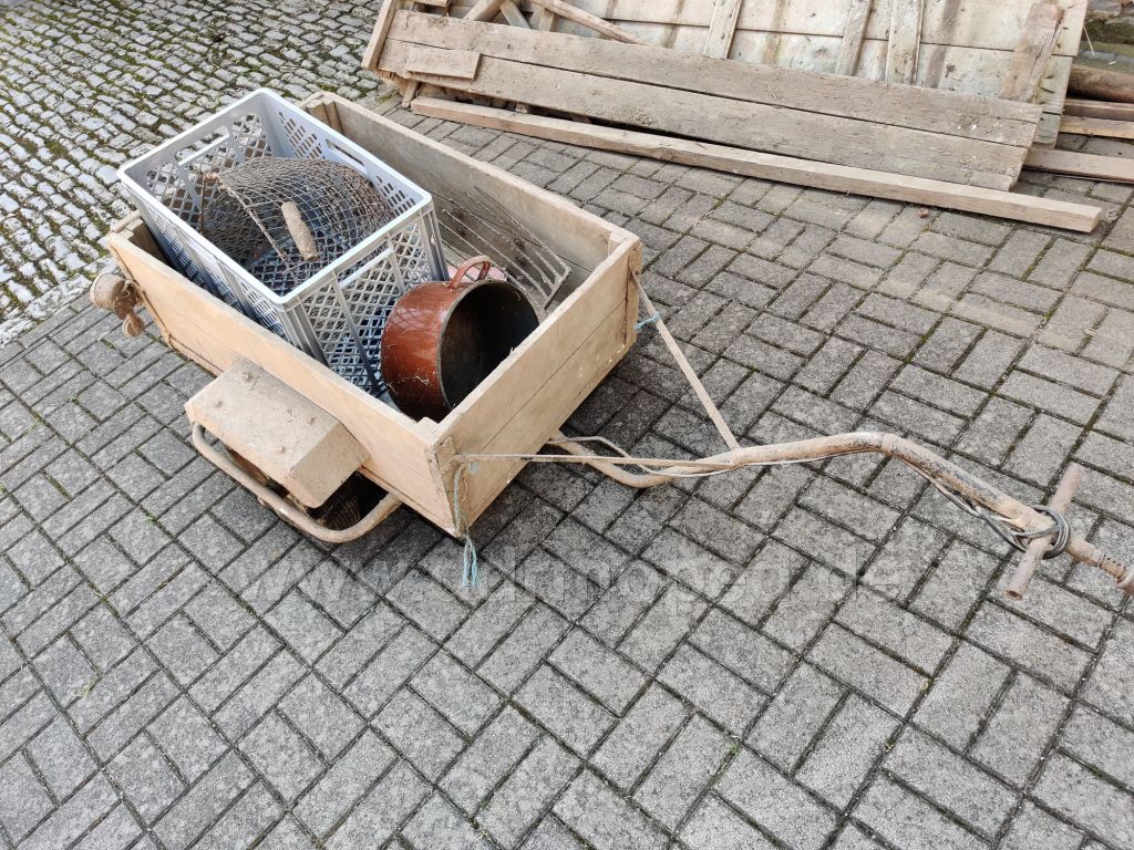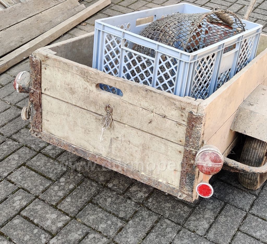 Hat jemand Interesse an dem Hänger? Sau schwer und höchstwahrscheinlich Eigenbau. Damit hat mein Opa in den 60er/70er mit der RT Futter für die Tiere geholt. Bedingt rollfähig, da die Reifen seit 40 Jahren platt sind. Die Lampen schraube ich wahrscheinlich noch ab.
