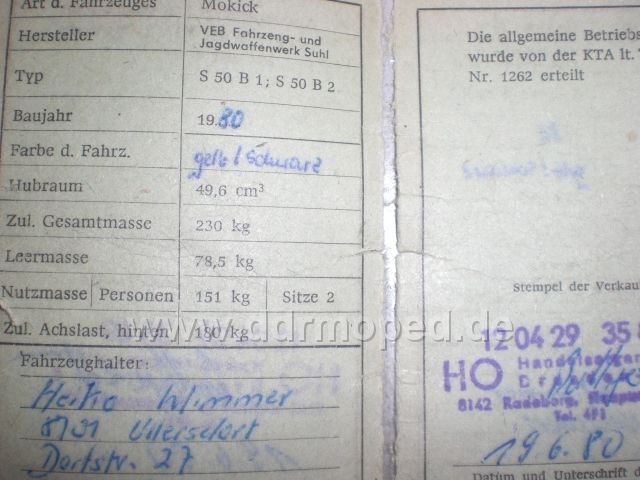 Simsondriver91 das ist komisch weil die Pappiere sind orginal vom 03.06.1980 . und da steht halt der S51 Motor drin Ich weiß nicht mehr was nun richtig ist  weil ich WILL den schon Orginal wieder aufbauen Trotzdem danke für die Info !!! Mfg Sven