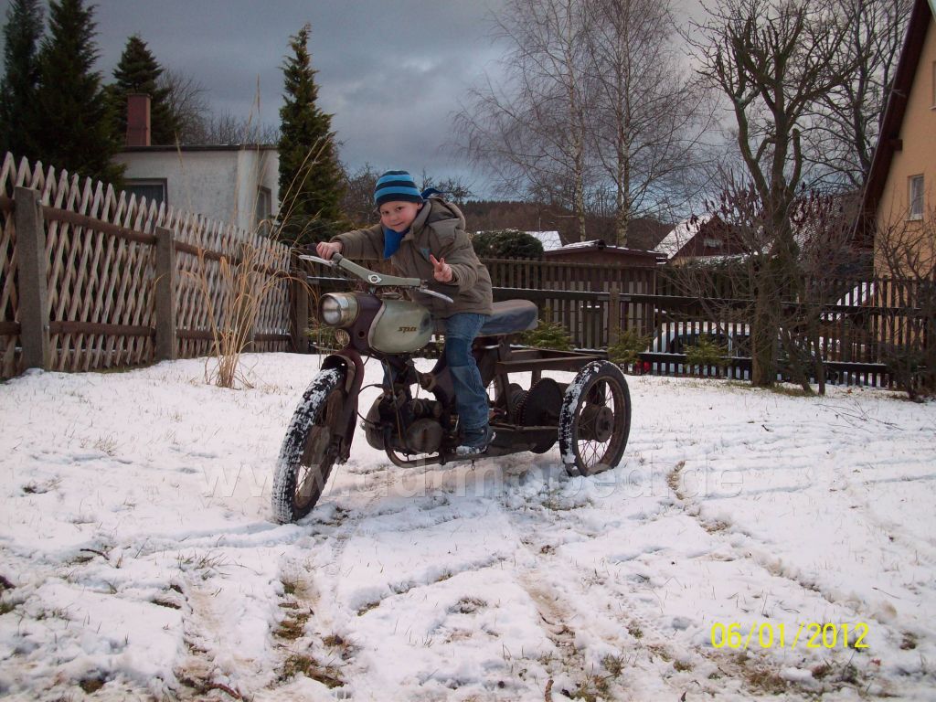 Ich möchte das Fahrzeug auch noch aufhübschen bzw. bissel durchreparieren. Als erstes muß ich die Bedienelemente machen, Bowdenzüge wechseln, Gasgriff und Griffgummis brauch ich noch. Der Schaltgriff ist auch sehr ausgeleiert. Beim Gasgriff ist die Nippelhalterung gebrochen. Ich will mal sehen ob ichs nächsten Samstag zur Augustusburg schaffe, zum Teilemarkt.