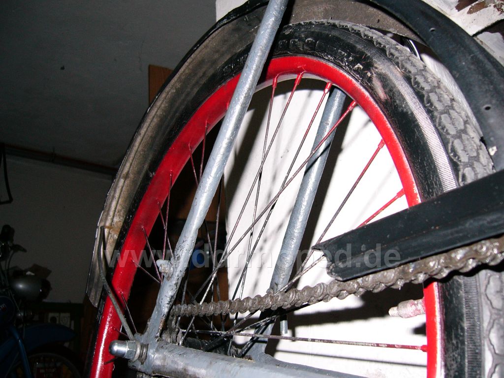 Felgenfarbe: Rot Speichenfarbe: Mattschwarz Die Schrift, die auf dem alten Bild zu sehen ist, kommt, bzw. ist schon neu (weiß) drauf
