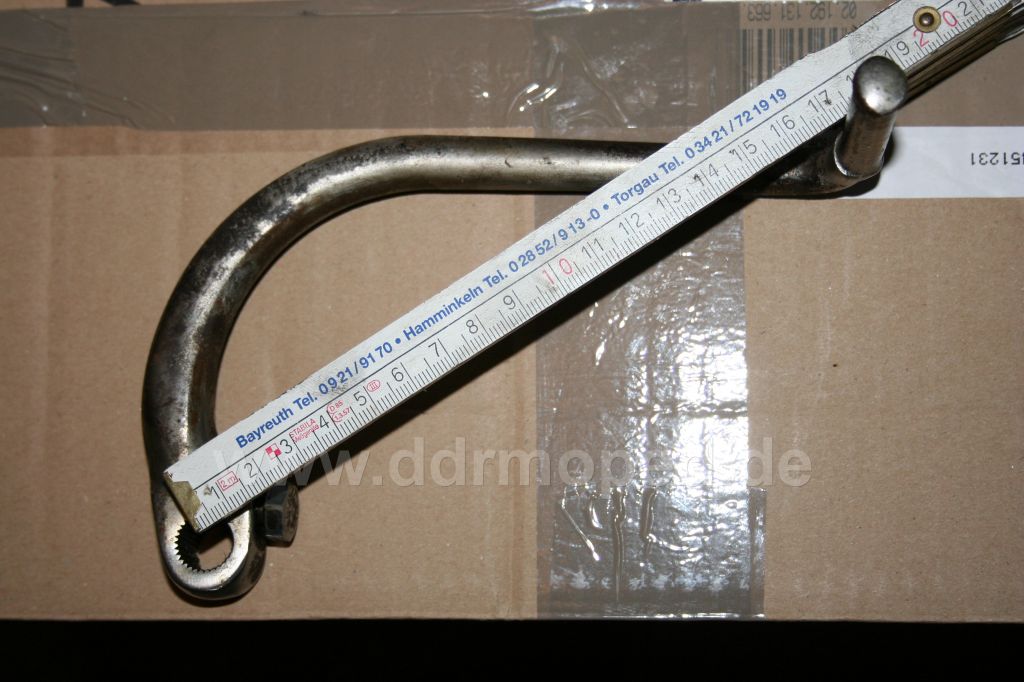 Na, dann machen wir doch mal los. Ich kann beisteuern die 64er Schwalbe, den 72er Star, den 60er Kr50 und paar Einzelhebel, wo ich nicht weiss. Ich würde vorschlagen: Foto Kickerhebel, möglichst montiert mit Schmiege Mitte Welle bis mitte "Fusstritt". Ich bin sicher, da kommen verschiedene Längen zusammen. Die Verzahnung würd ich erst mal weglassen, denn z.B. ich demontiere nicht fürs Foto die Hebel. Das können wir später auch noch tun.  Wer ist der Erste? Auf die Schnelle: S51, M541 und der Auftraggeber hats Öl nicht abgelassen... 20 oder 20,5 cm.