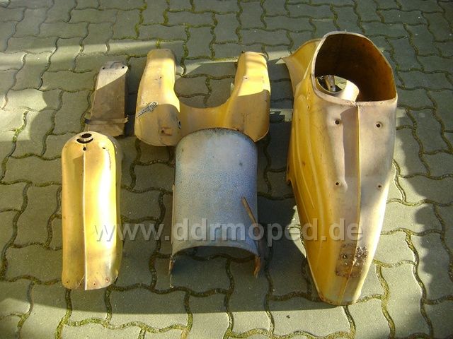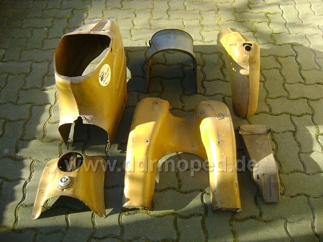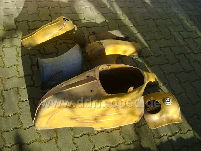 Zum Verkauf stehen die auf dem Foto abgebildeten KR50-Blechteile, sind teilweise noch mit Original-Lack, der aber nicht mehr so dolle ist. Preislich hab ich mir 50 Euro für alle Teile komplett vorgestellt, es können aber auch gern Angebote zu Einzelteilen gemacht werden. Bei Interesse an Detailbildern bitte kurze Mail.