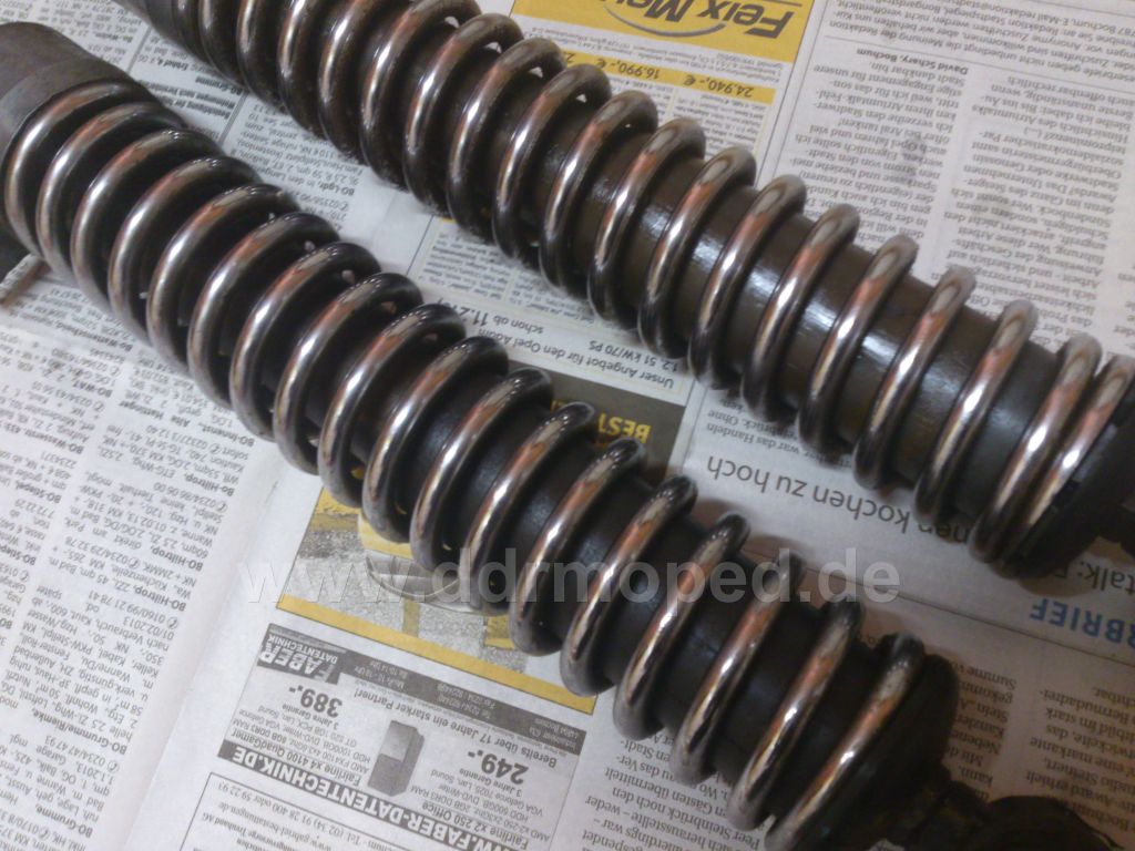 Hier noch die Stoßdämpfer. Das Chrom hat an einer Seite Rostansatz, lässt sich aber bestimmt wegpolieren. Und der Hebel ist an einer Seite gebrochen, kann aber noch verwendet werden.