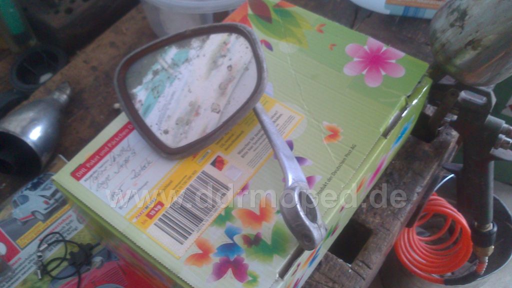 '76 ??? Da gehört doch aber der kleene Stab-Pittyspiegel ran, der in das Klemmstück für Kupplungshebel geschraubt wird .