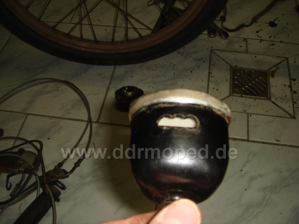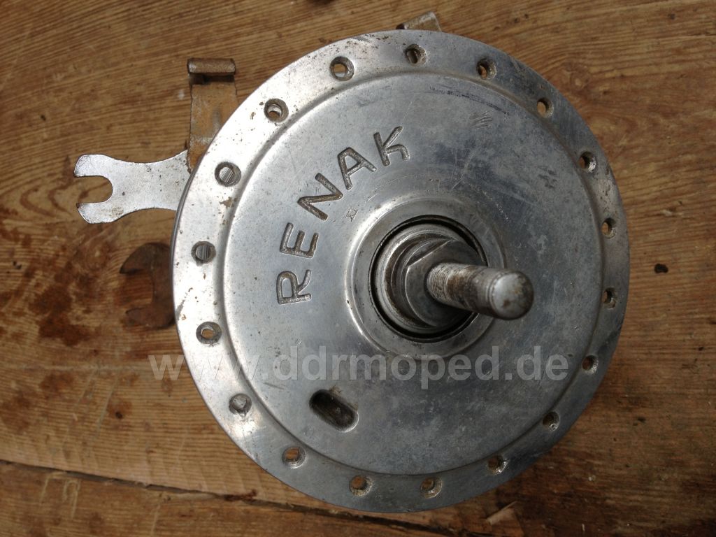 Guten Morgen. Hallo Jens, zu deinen Fragen/Hinweisen. Passt der kleinere Tachoantrieb auch zu meiner Nabe? Es ist vorn ne 10er Achse drin. Gabel ist mit Federn - nicht richtig? Hab mich schon ein wenig gewundert, da die von der Farbe her etwas anders ist. Wie muss denn die richtige Gabel sein? Rücklicht - sei bloß froh das du das nicht siehst, da war irgend so ein komisches Gebilde dran, das brauch ich definitiv neu. Seitenbleche alle vorhanden, Fotos am Wochenende. Hier mal meine Vorderradnabe im Erwerbszustand