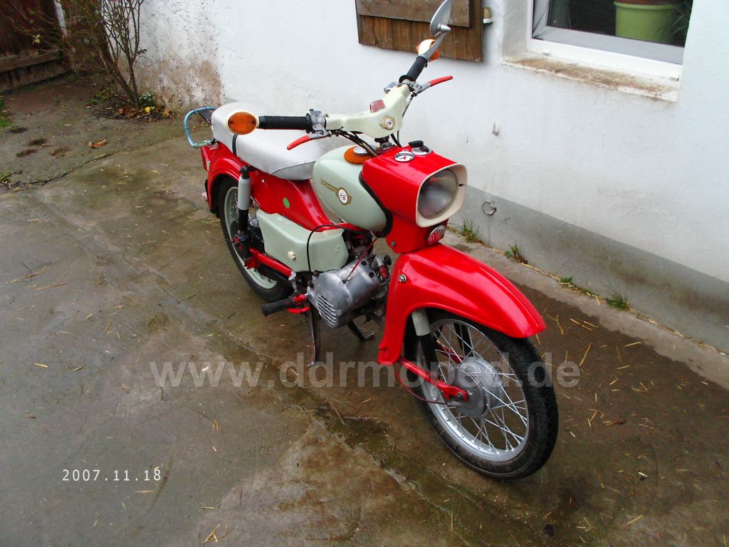 Zuhause fragte mich mein Bruder, wie`s war und ich antwortete:"Na ja, großer Mann auf kleinem Moped halt`."Dann bemerkten wir den Platten am Hinterrad und einerseits zufrieden, andererseits verärgert und ich dem Tod von der Schippe gesprungen, machten wir uns wieder in die Werkstatt und fuhren fort. (Allerdings nicht mit dem Moped, sondern mit der Reperatur des selbigen.)