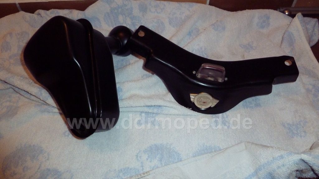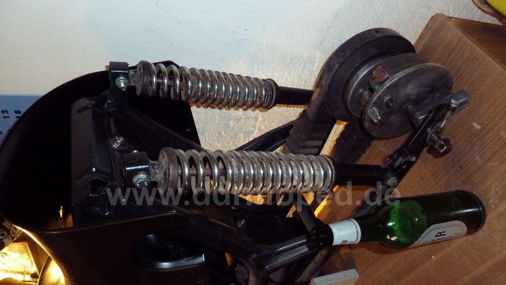 Dies wird sich aber vermutlich erst später zeigen, da der Pulverlack zumindest die Aufbau und "Einfahrzeit" bleiben wird => spart Kratzer an lackierten Moped.