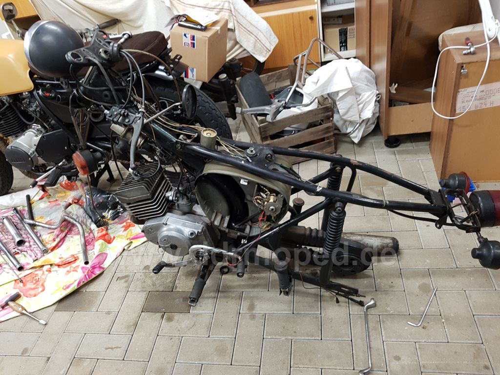 Das einzige Problem was noch besteht ist - der Kickstarter rutscht durch. Den hatten wir gestern schon auf und der Mitnehmer war komplett abgeschert. Den haben wir ersetzt, aber jetzt befürchte ich, dass durch das ganze Tohuwabohu die beiden Zahnkränze ebenfalls fertig sind