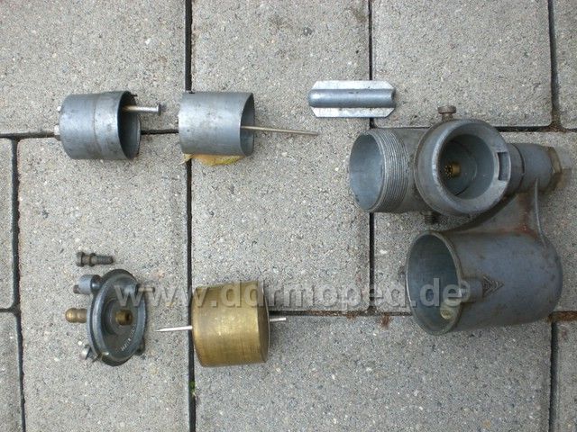 Hallo! Ich leide momentan etwas unter Geldnot und will auch mal das loswerden, was bei mir nur rumoxidiert. Da wären einmal 3 Vergaser, Durchlass messe ich mal. Der Mittlere ist komplett, beim Linken fehlt oben der Ring und beim Rechten etwas mehr. Der Linke könnte vom Berliner Roller sein, wurde mir hier gesagt, da er einen Chokeschieber hat (nächstes Bild dann) Falls jemand Interesse hat, kann ich ja nochmal genauer gucken. Mir ists egal, ob einzeln oder zusammen. Verpackung/Versand = 4€ bitte schlagt mir Preise vor!!! Bearbeitet von Mopedfuchs am 11.06.2008, 23:24