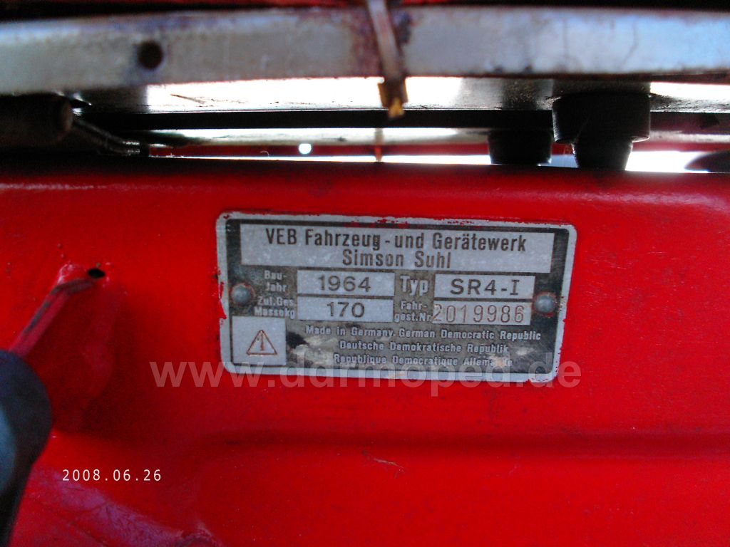 Nun gut, dann will ich ich mal beteiligen um der Aufklärung der Historie von DDR Fahrzeugen zu helfen. Mein Spatz Bj. 64 Das Typenschild weißt keine Kennung auf Pedal oder Kickermotor hin.