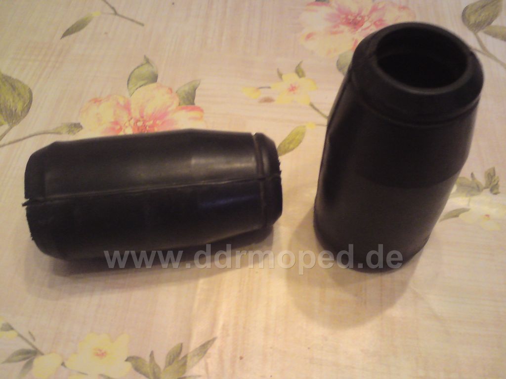 Mit den Faltenbälgen war das damals nicht so einfach; mal schnell zu A-K-F oder von 3-2-1 war nicht. Also haben wir uns zu helfen gewusst, indem wir Gummis von Achsmanschetten nahmen. Die waren zwar zu kurz, aber da haben wir eben zwei zusammengesteckt Thorsten P.S.: Es können auch welche vom Lenkgetriebe gewesen sein ...