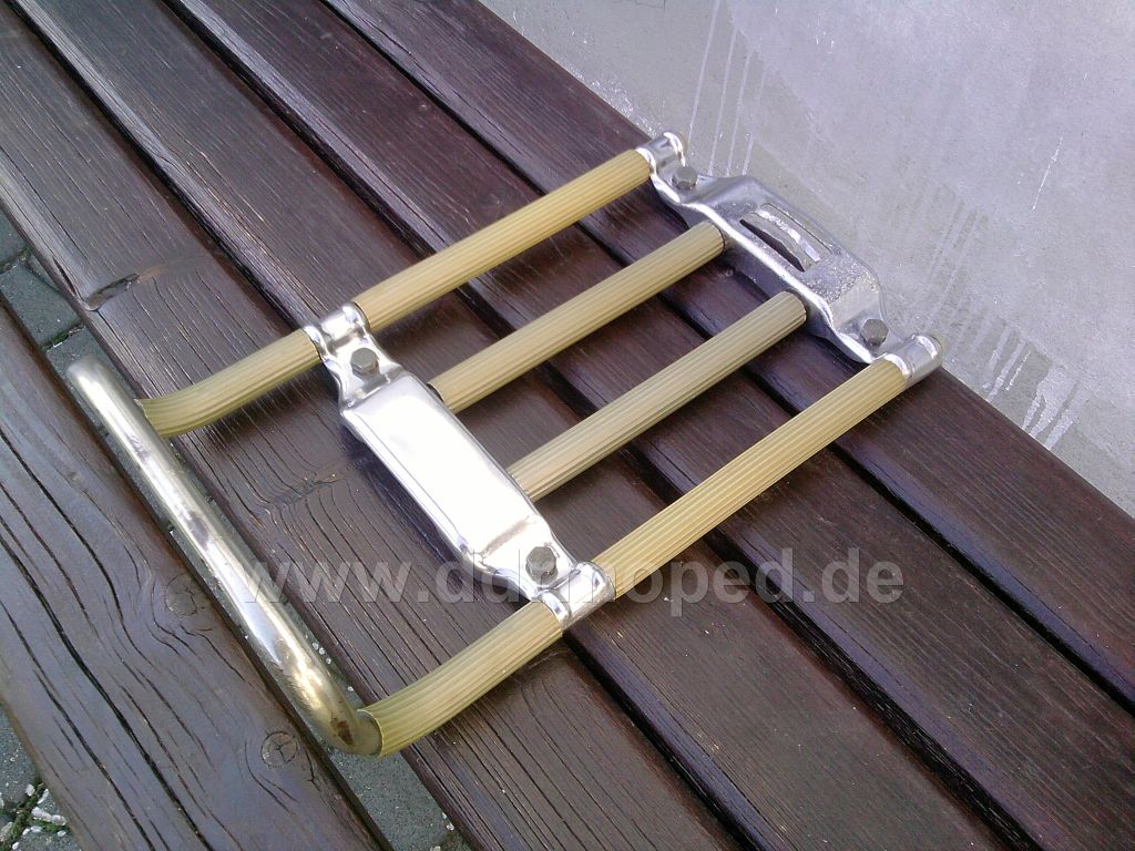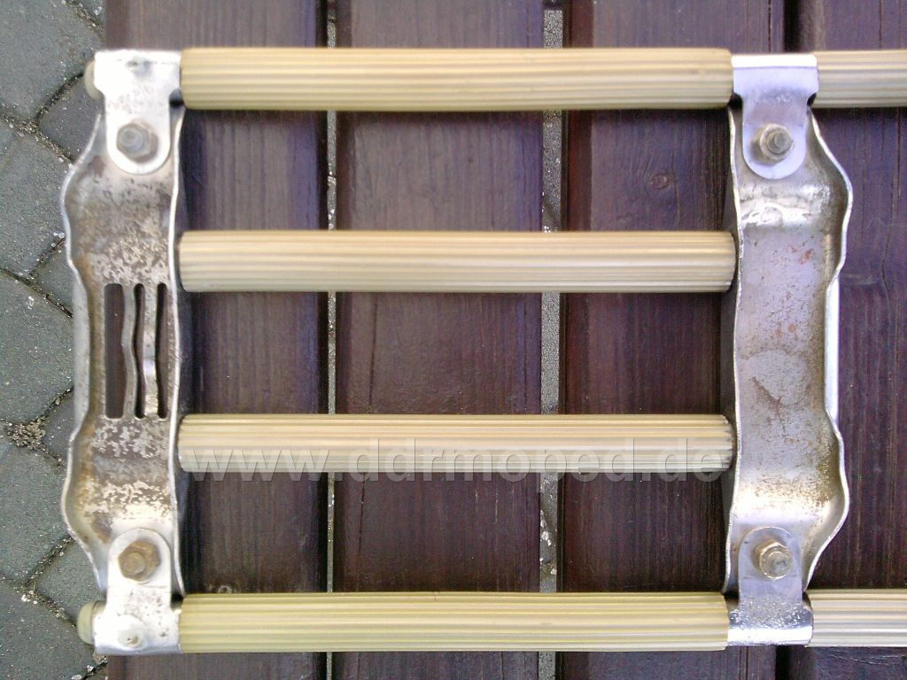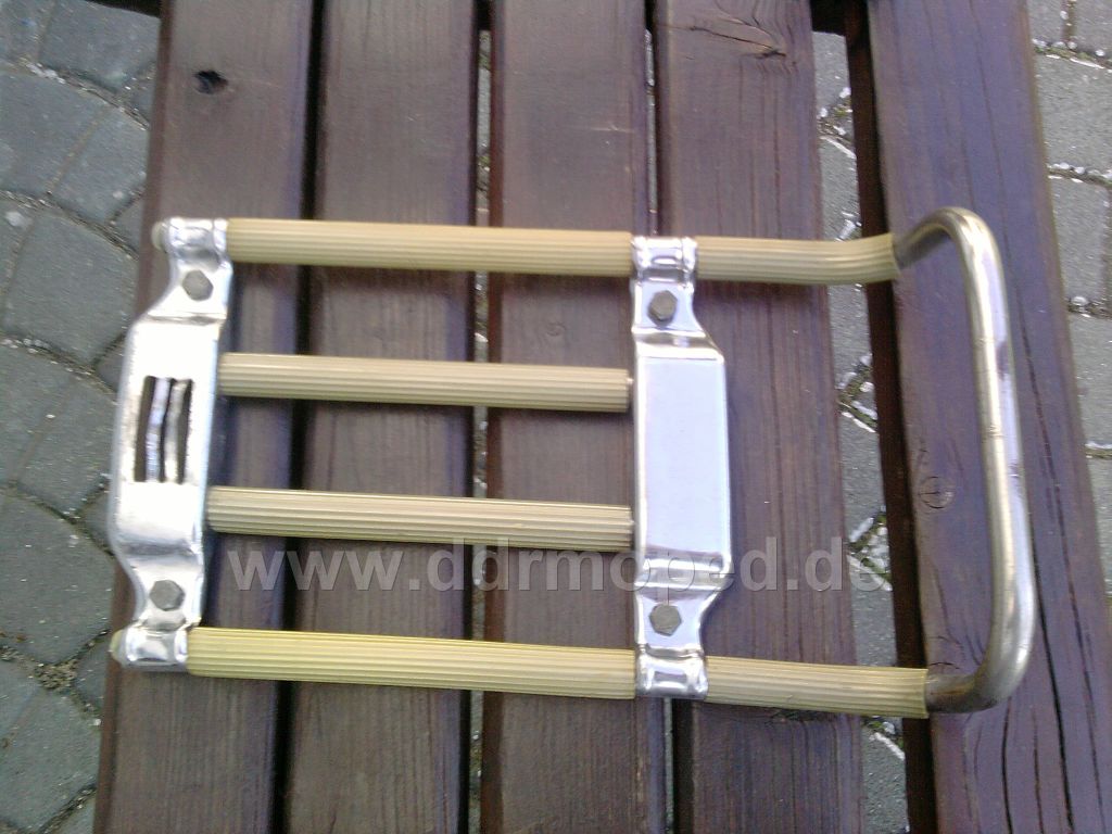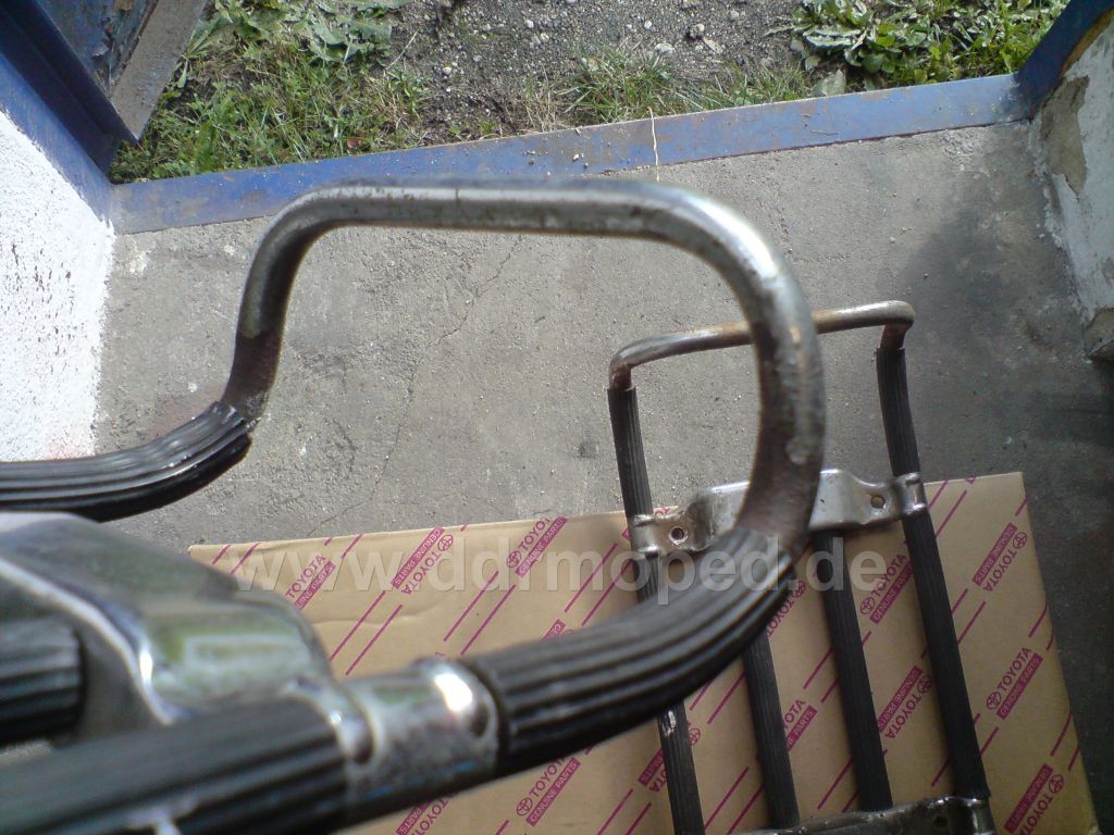 Hallo zusammen, der gute Simsonhändler wollte den Gepäckträger nicht haben, dem entsprechend würde ich ihn gerne hier zum Tausch anbieten. Es ist wie beschrieben ein 68er, den ich mit viel Arbeit wieder schön gemacht hab. Den Zustand würde ich als leicht patiniert, aber gut beschreiben, originale ESKA-Schrauben gibts auch dazu. Im Tausch hätte ich gerne einen wirklich guten mit schwarzen Gummis. Detailbilder von mehreren Seiten kann ich gerne nachreichen. So sieht das gute Stück aus:
