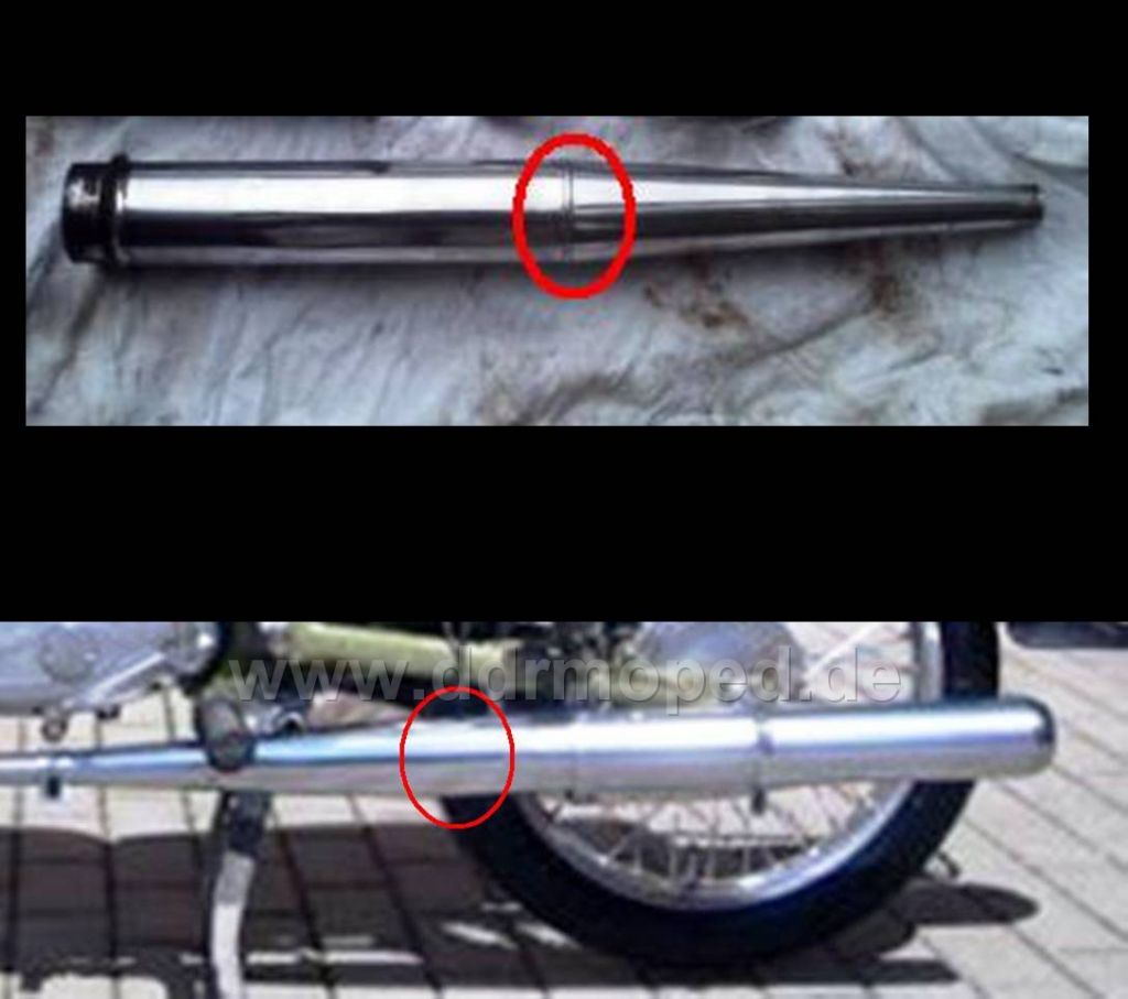 Die "Alten" unterscheiden sich unter anderem darin, das sie im vorderen Teil, da wo der konische Teil des Auspuffs endet, keine Schweißnaht haben wie die spätere Version!