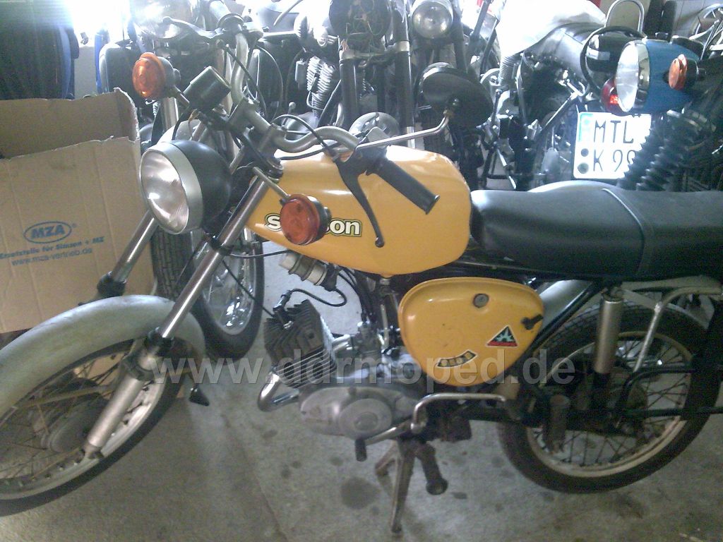 Habe ein S 50 B2, so, wie es auf dem Bild zu sehen ist, bekommen. Es ist Baujahr 1976. Ich habe schon viel im Forum über die Frage "Was muss an ein S 50 dran, damit es original ist?" gelesen. Vielleicht kann dennoch jemand sagen, was außer den Stoßdämpfern vorn, kleines Rücklich und fehlende Chromhülsen hinten verändert werden müsste. Müssen zum Beispiel auch nun die Alugriffe mit dem Knubbel dran? Das Tachogehäuse muss auch wieder schwarz gemacht werden. Außerdem würde mich interessieren, welche Aufkleber wo dran müssen-speziell jetzt S 50 allgemein. Ich meine damit nicht die Position, sondern welche Aufkleberfarbe auf welchen Tank usw. . soweit ich das an meiner noch erkennen kann, waren die Simsonschriftzüge blau mit weißem Rand. Gab es auch andere Kombinationen? Ich möchte das S 50 saharabraun lackieren-wie sah es dort aus? Das würde mir schon mal weiterhelfen. War sonst immer nur im Gebiet Sr2 und KR 50 tätig. Danke!