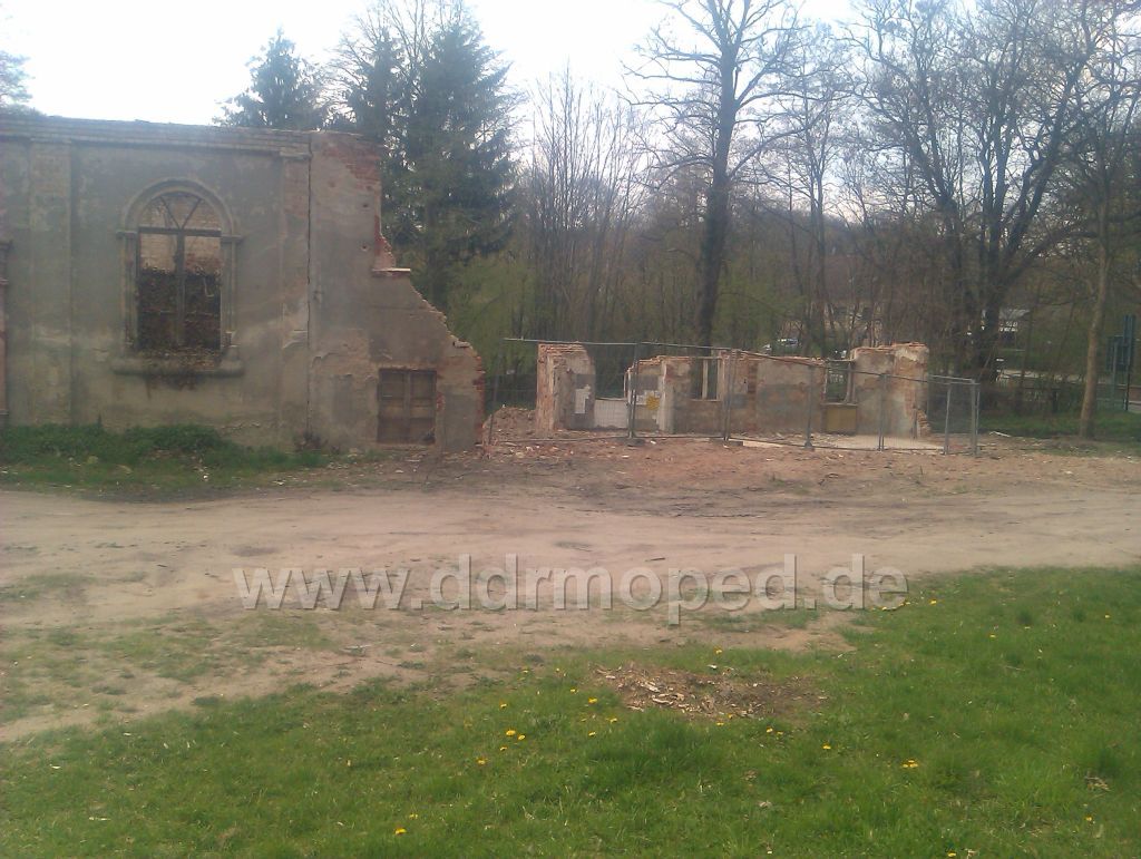 Anschließend hab ich an dieser Ruine gehalten, vor 10 Jahren war hier noch deutlich mehr erhalten, denn hier war das Hotel Schlosspark. Es ist zu DDR Zeiten m al ausgebrannt stand aber noch in den 90igern und wurde vor kurzem abgerissen.