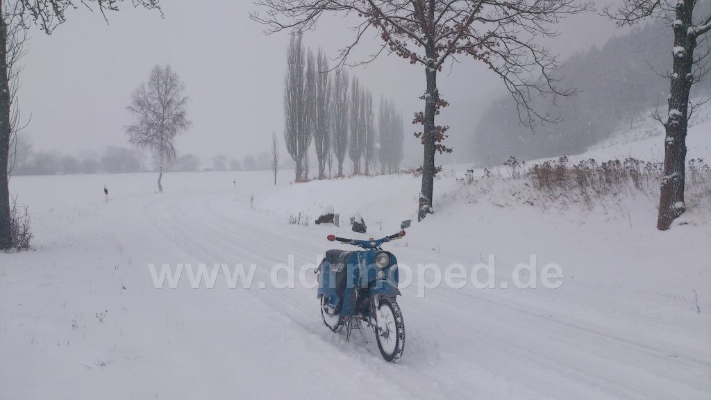 In der Freizeit mal ne kleine Runde durch die winterliche Landschaft drehen geht schon. Ich bin aber echt froh das ich bei so nem Wetter nicht mehr mitm Moped jeden Tag 20km an die Arbeit fahren muss, so wie vor 2 Jahren noch.