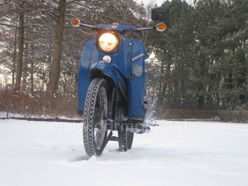 Aber die blöden Blicke der Autofahrer sind einem sicher, wenn sie sehen das bei dem Wetter noch jemand auf Moped unterwegs ist! Und wenn man dann noch Autofahrer überholt auf der zugeschneiten Straße.