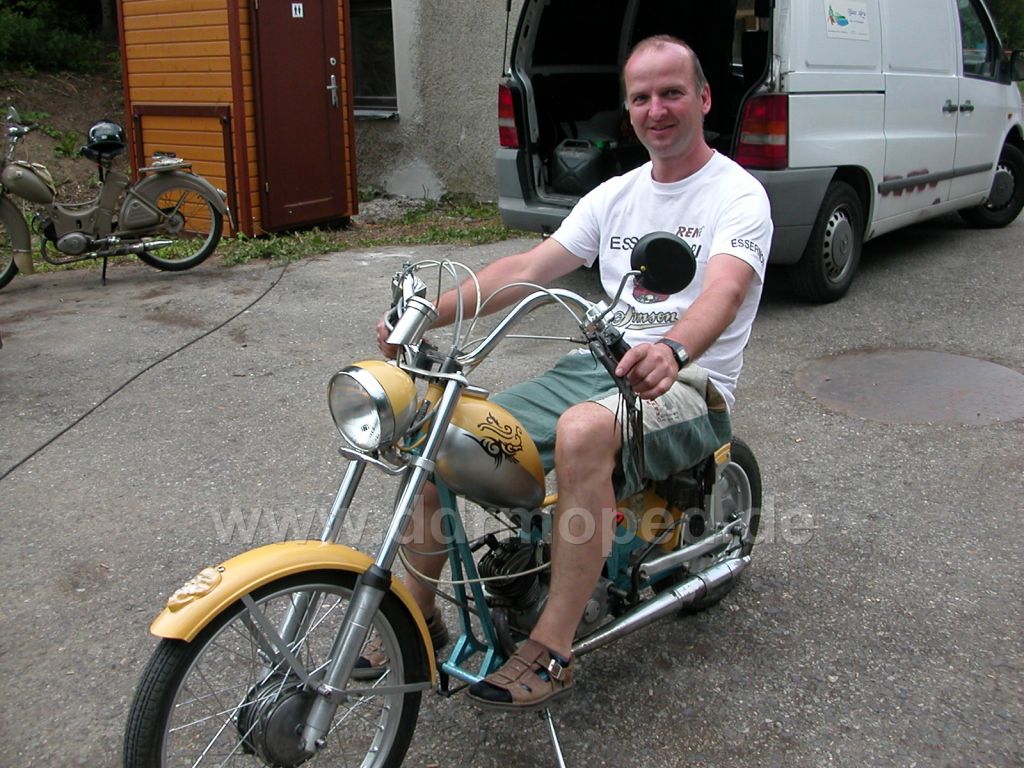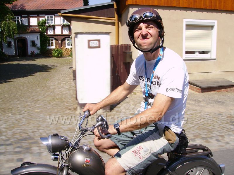 Jerome, meinst Du etwa in der Mitte vorne den Peter ? Das ist doch der "alte Mann" der gerne mal preiswert einen Essi für eine weinerliche Geschichte von "Forenmitgliedern" abgibt, um ihn sich nachher in der Bucht mit blumiger Beschreibung noch mal anzuschauen zu dürfen. Wegen dem bekomme ich doch keinen Herzkasper. Im Gegenteil das ist ein dufter Typ.  Tja, von Peter seiner Sorte müßte es eben mehr geben ... !! Peter ist auch zum UT angemeldet und ich muß noch ein kleines Bierchen mit ihm heben denn er hat mir einen Mopedanhänger (wie S-U ihn hat) geschenkt. Dieser wurde und wird aber nicht verhökert, mir jedenfalls gehen Hobby und Freunde vor. Ansonsten ist das doch ein schönes Bild von UT 1 an das ich mich gerne erinnere warum sollte ich Herzkaspern.