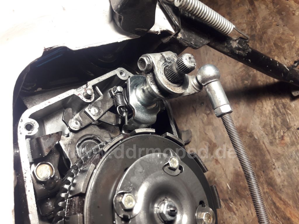 Schaltung und Kupplumgszug sind falsch verlegt. Die müssen unter dem Tank, weil die sonst beim Lenken stören. Sieht dann auch besser aus.