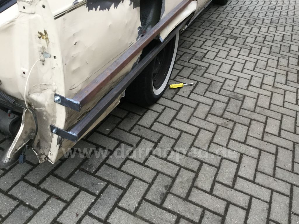 Ja Pestalozzi Str. gut wieder erkannt! Ein Transporter hat gewendet und sich nicht rückversichert. Erst dachte ich er biegt ab,dann als er gerade zog hoffte ich würde er machen bin zur Vorsicht noch bis fast in die dritte Spur ausgewichen aber er fuhr nach dem Motto das letzte Mal kam auch keiner also ziehen wir voll rum und diesmal kam einer! Ich hab auch zwei Videos davon,eins von der Front Kamera eins von der Rückkamera! Ich meine wenn man wendet muss man immer anhalten und noch mal über die Schulter zurück schauen, denn der Spiegel zeigt nicht alles erst recht nicht wenn sich das Auto bewegt.... dann zeigt er möglicherweise die falsche Fahrspur und man merkt es nicht. Es gab da im Prinzip drei Möglichkeiten. 1. normal weiter fahren auf meiner Fahrspur und darauf vertrauen dass er sich rückversichert hat. Dann hätte er mir aber die ganze Seite demoliert und der Schaden wäre noch größer! 2. hellsichtig sein und eine Vollbremsung machen als er gerade gezogen hat, ich war aber schon ziemlich dicht dran als ich das sah also wer ich frontal ihm in die Seite reingefahren. Das wäre auf alle Fälle vorn besser zu reparieren gewesen! 3. intuitiv entschied ich mich für Variante drei und zwar im großen Bogen ausweichen für den Fall dass er doch irgendwie anzieht man hat ja gesehen er war in Bewegung geblieben Er hatte dann aber gut 4-5 m um noch irgendwie zu reagieren… Tat er aber leider nicht.....fuhr weiter wie von Sinnen! In der kurzen Zeit spielt man aber diese drei Varianten nicht geistig durch, dafür ist die Zeit einfach zu kurz.....man entscheidet sich einfach intuitiv für etwas. https://share.icloud.com/photos/0xe36XKvtqu...vp6GwBmWw#Gubenhttps://share.icloud.com/photos/0Y9_hN88WOu...DzXH1QX6w#GubenP.S. Ein Mopedfahrer wäre hier mit Sicherheit für einige Zeit im Krankenhaus gelandet, egal ob er ihm in die Seite gefahren wäre,gebremst hätte,und seitlich unter den Transporter gerutscht wär oder wie ich ausgewichen wäre und er hätte ihn mit vollem Schwung vom Moped katapultiert. Wer auf jeden Fall böse ausgegangen! Das muss man beim Moped fahren auch bedenken! Man ist völlig schutzlos! Macht einer einen Fehler ( und das ist nie ausgeschlossen.....ist im Prinzip jeden Tag russisches Roulette ) sind meist gleich die Knochen dran....egal ob nun selber schuld oder auch nicht, es ist dann nicht mehr rückgängig zu machen und meistens bleiben gesundheitliche Folgen fürs ganze Leben. Das kann dem Unfallgegner leid tun, der kann sich entschuldigen, das kann auch alles ehrlich gemeint sein und von der Versicherung kann es auch ein Schmerzensgeld geben, aber rückgängig macht das die Sache nicht und die gesundheitlichen Folgen auch nicht. Dann hängt meist noch dran, dass man für den Arbeitsmarkt mit irgend einer Behinderung erst mal erledigt ist.....und damit ist das ganze Leben mehr oder minder verpfuscht! Gegnerische Versicherung hat die Schuld anerkannt nur das Gutachten ist bis dato noch nicht fertig weil es mit den Ersatzteilpreisen und so weiter.... ist halt alles etwas speziell. Ja sehr unschön....gerade weil die Restauration noch keine zwei Jahre her ist. So ein schwerer Unfall ist zwar nicht alltäglich aber trotzdem muss man irgendwie damit rechnen,dass irgendwas passieren kann wenn man sich jeden Tag im Straßenverkehr bewegt. Diese rustikale Reparatur und Richtmethode wurde früher öfters angewandt eben weil es keine Richtbank gab oder andere hydraulische Geräte. Was sollte ich machen? ich hatte vorher angefragt aber es war kein Richt Winkelsatz für mein Fahrzeug für die Richtbank zu bekommen! Also Auto verschrotten oder irgendwie versuchen! Als DDR Bürger musste man sich schon immer selber helfen! Man sagt auch, man soll dem Unfallgegner nie die Breitseite bieten,weil die ist weich und schwer zu reparieren. Aber wer ist so eiskalt und hält voll drauf zu… Das kostet eine Verdammte Überwindung man versucht doch immer noch irgendwo die Situation zu retten. Aber drauf zu halten ist besser,denn vom ist vieles geschraubt und viel leichter zu reparieren. Naja passiert ist passiert und hinterher hätte hätte Fahrradkette hilft alles nichts geht nicht rückgängig zu machen! Am Wochenende noch paar Restarbeiten gemacht heute Abend noch den Kofferraum ausgeräumt, morgen soll es zum Lackierer gehen.