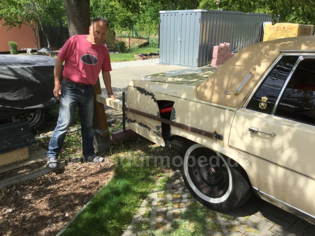 Auto ist jetzt beim Lackierer und die Restarbeiten machen die jetzt die eingefallene Naht noch etwas rausspottern und dann ebend spachteln und lackieren und werden noch das Radhaus Sandstrahlen was ich schon vorher blank geschliffen habe und so weiter.