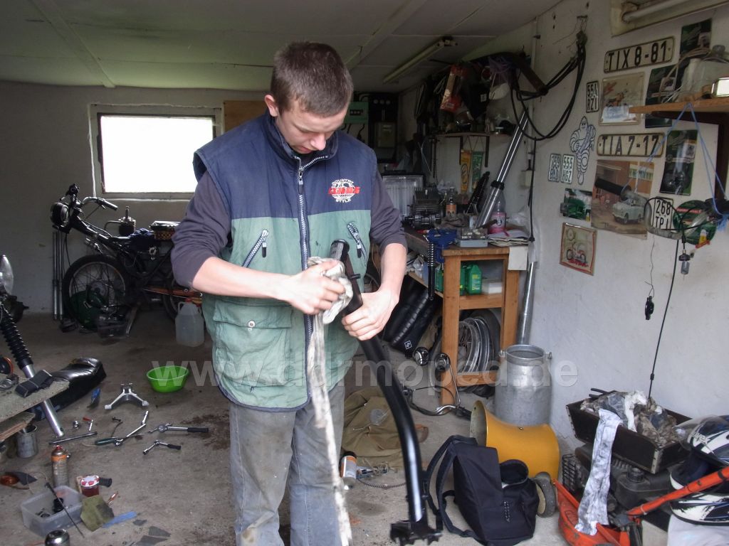Mit Willi (simson willi) ging es an einem Tag, vom Lackieren übers Zusammenbauen. Wenn meine Eltern uns nicht den Strich durch die Rechnung gemacht hätten und wir die ganze Aktion 22:30 Uhr nicht abbrechen müssen, wären wir noch schön weit gefahren. Aber morgen ist auch noch ein Tag, zum Mittag will ich die ersten 100 Kilometer drauf haben