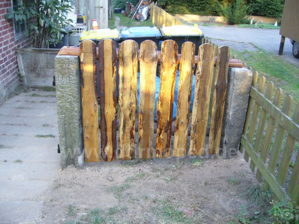 | QUOTE (Sachswolf @ 21.10.2013, 21:41) | | Damit das Tor nicht mit der Zeit sich nach unten verzieht müssen die Versteifungssteben unten und oben stoßend gegen den Riegel eingeschnitten sein. |