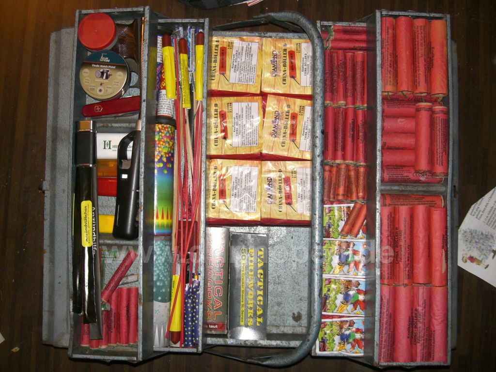 hochgehen. Von daher lege ich wert auf vernünftige Produktion. Also bleibt da nichts anderes als deutsches Feuerwerk übrig. Ach, oben Links ist übrigens die Schreckschusswaffe