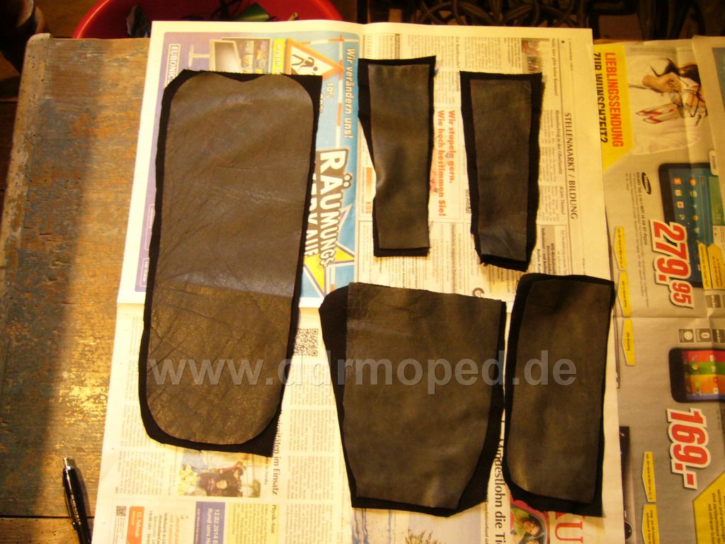 Heute eine der Spizalaufträge erledigen* Das Leder wir auf ein kräftigen Jeansstoff geklebt, da zu weich und schwabblig. Das ist also so ähnlich wie die Kuststoffschicht auf ein Stoffgewebe beim Kunstleder. Die Woche soll er fertig werden.