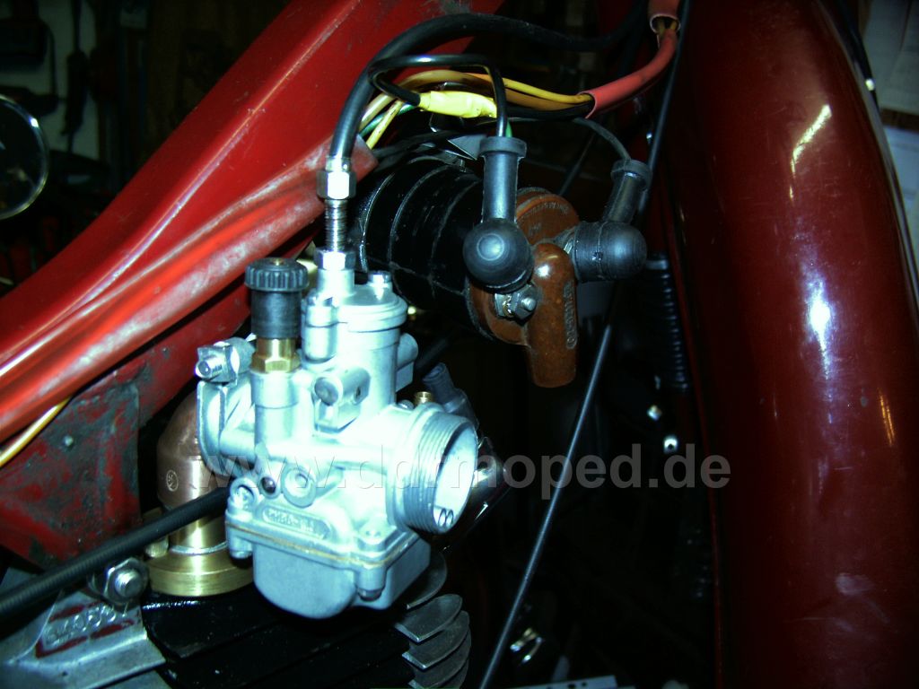 Ich hatte ja die ganze Zeit Fuß und da wird nichts, dieser Tage gehts langsam weiter,is noch viel zu tun. Kleinigkeiten halten auf.Da hab ich den ganzen Tag mit der Tachowelle zugebracht,die eine hat zwei unterschiedliche Enden, wo keins passt und die andere hat zwei gleich dünne,die auch nicht passen, fermaledeiter Mist,hab ich die passend gemacht,hüpfte der Tacho... hab ich am nächsten Tach die andere passend gemacht,so vergeht die Zeit. Und der Gasbowdenzug ist auch nicht mehr das,was es früher mal war. Erst war er zu kurz,dann zu lang,hat irgendwas nachgegeben  , da mußte ich eine neue Einstellschraube anfertigen,weil die originale zu kurz und das Gewinde eh nicht in den Dellorto passt. Für die Zündspule muß auch noch ne Aufhängung gemacht werden,da hatte jemand mal was gepfuscht und abgebrochen. Is bei dir die Z-Spule noch original dran ? Machste ma ein Foto ?