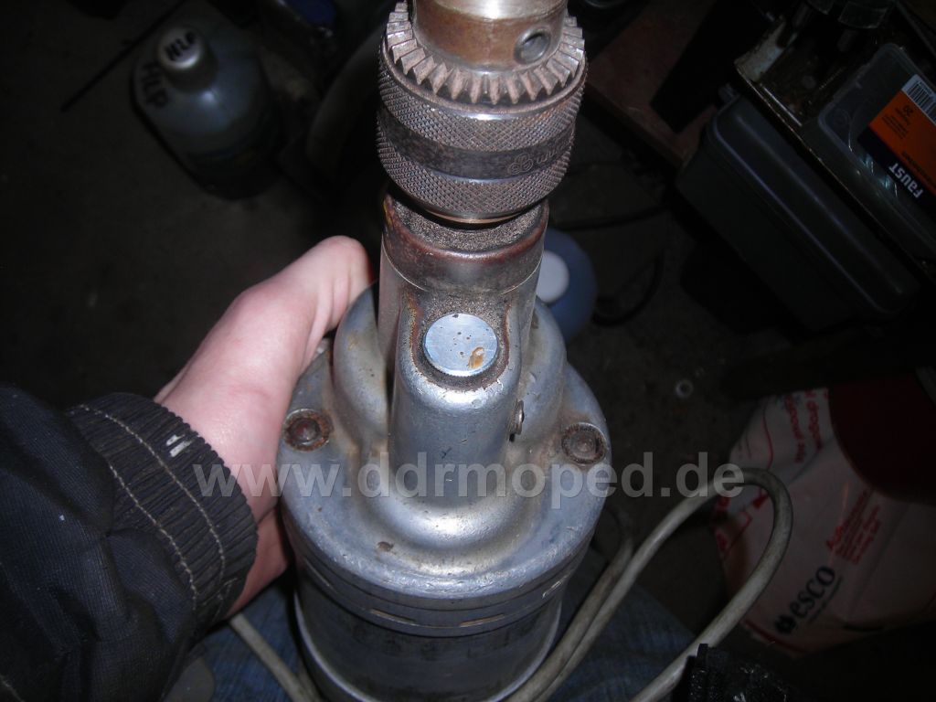 Oje, da habch ja wieder was angerichtet. Erst gar keine Maschine und jetzt einen "Pool" Jeromchen: Es scheint eine etwas andere Gehäuseausführung zu sein. Wichtig ist nur das vordere Getriebeteil. Ist denn bei Deiner Maschine an der Gehäuseausbuchtung unterhalb des Bohrfutterausgangs ein Loch vorn? Mit ner Kappe verschlossen? Oder ist das zu? Andreas seine müsste das haben. Darunter steckt nämlich ein zusätzlicher Ausgang direkt vom Rotor, an den manche Teile gekoppelt werden. Andreas, Enno, Sax, danke  Wartet erst mal, was Jeromchen sagt. Es wäre einfacher als hier 7 mal was quer durch die Republik zu schicken.