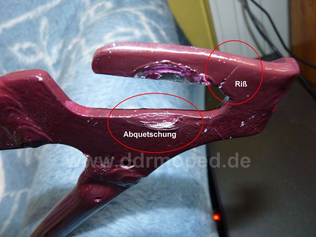 Durch die Abquetschung des Materials mußte sich die Achse beim anziehen der Mutter rausdrücken und somit ist die untere Zunge gebrochen.