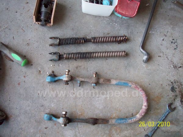 die Schwinge wackelt, vorne ist eine Feder gebrochen, der Rahmen ist verbogen, die