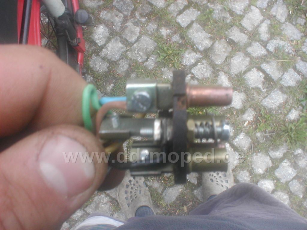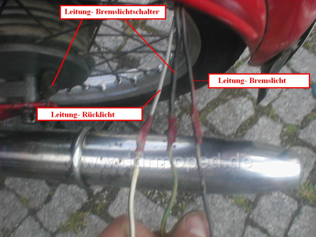 Dann ging es erstmal an das S50 Rücklicht. Dafür habe ich die Leitung in.. braun für Bremslichtschalter, gelb für das Rücklicht, schwarz für das Bremslicht, und blau für die Masse ..verwendet.