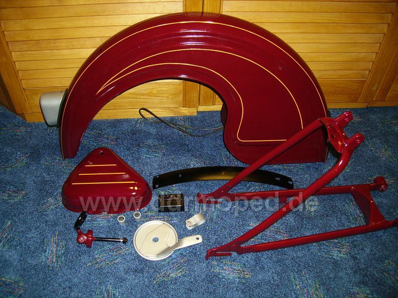 So langsam kommt das Projekt auf die Zielgerade... Auch wenn man mich schon "der Vernichtung wertvoller Teile"  bezichtigt hat, hier noch ein Beweis, dass ich mir die ganze Sache nicht besonders einfach mache. Daher ist selbst die Schutzblechstrebe ein Eigenbau! Alles was ich so auftreiben konnte, entsprach nicht meinen Vorstellungen und dann hätte auch noch die Umarbeitung (ich wollte keine Schloßhalterung) erfolgen müssen. Bevor ich mir diese Arbeit mache, ist so eine Strebe auch schnell selbst gebastelt...  Mein Gedanke war, was die Früher konnten, dürfte doch heute kein Problem sein! Derzeit bekommt nebenbei der Rahmen seine Farbe und dann kanns auch schon bald ans Montieren gehen. Schade das dann wohl erstmal kein Wetter für ne Ausfahrt ist...