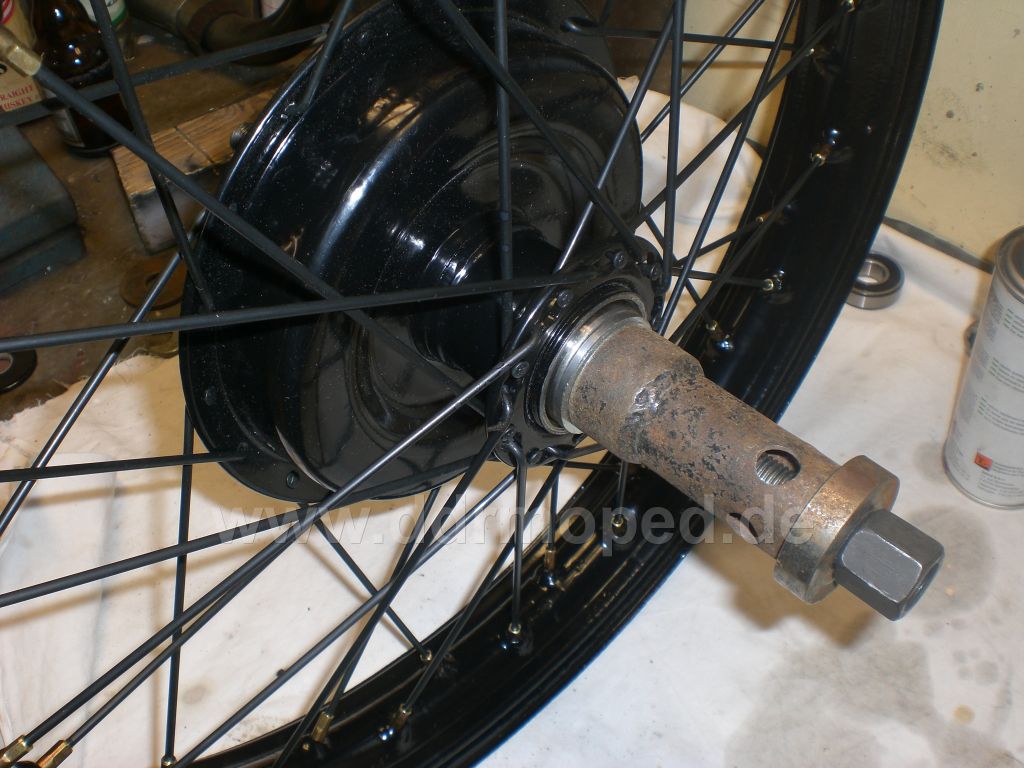 ...so die Lager sind drin. Um die Ringmutter wieder schön festziehen zu können habe ich kurzerhand einen Flexschlüssel umfunktioniert