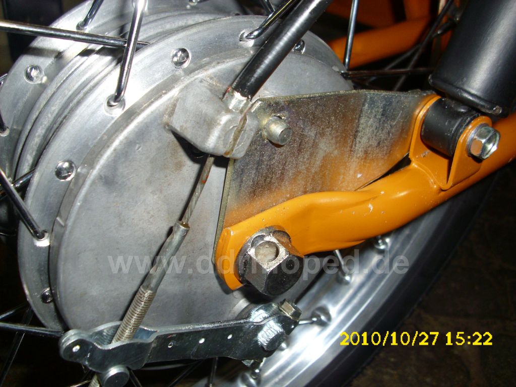 Nein,das gab es schon bei vielen 4/1ern,hab zumindestens diese Art der Bremse sowohl hier im Forum in vielen Beiträgen mit bildern als auch im www(ebay)gesehen.Sinn soll wohl sein,das der Bowdenzug nicht erst noch nach rechts durch das Schutzblechloch gezogen werden muss,die Verlegung ist eingfach praktischer.Ab wann man diese Variante verbaut hatt,kann ich nicht sagen,ich war ja nicht dabei,aber bei meinem Duo ist es ganz definitiv noch original so,der Vorbesitzer hatt bis auf Blech.-bzw Korossionsschäden nie etwas verändert,warum auch?Ich nehme mal an,das es so wie bei vielen Fahrzeugproduktionen in der DDR war,das man kleinere technische Verbesserungen auch schon vor der einführung in eines neuem Fahrzeugtyps eingeführt hatt,so nur zB.beim SR2 die Stahlfederung ab 59,wo aber offiziel der SR2E diese erst ab 1960 bekannt gemacht wurde.Mein Duo ist von 86,da ab wurde es kaum genutzt,macht keinen sinn,das ausgerechnet die Bremse umgebaut wird, wo es doch viel sinnvollere Umbauten daran gäbe. Aber fragen wir doch die Profis hier,gibts dazu irgentwelche Hintergrundinfos?