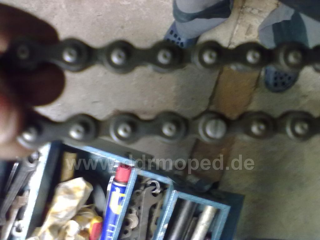 Nein das ist original,die frühen Ketten bei den Simsonrädern waren geschraubt mit einer Schraube wie auf dem Bild zu sehen. meist wurden aber die Ketten schon mal erneuert und dann mit Schloss wie man es sonst kennt. Da hast du noch was seltenes. Ich hab bei meinen Simsonrädern auch noch die geschraubten dran.