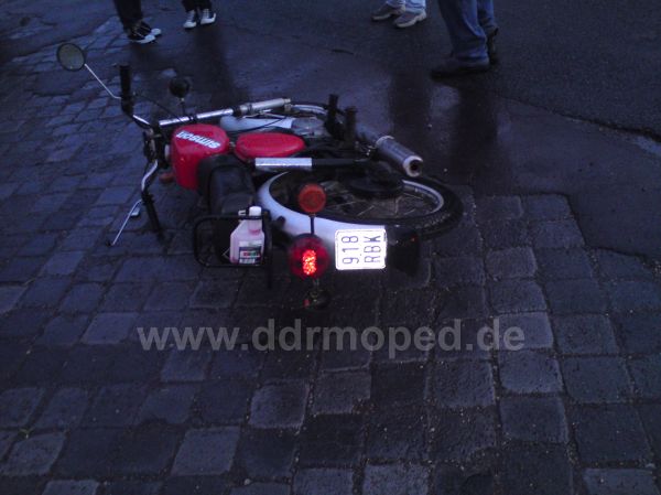 Hallo liebe Simsonfreunde Ich hab da mal `ne frage: Also ein kumpel von mir will mir eine s50 verkaufen.Wegen eines unfalls ist nun die Lampe etwas verbogen,4Blinkergläser kaputt ,Lenker u. Fußraste verbogen.Außerdem hat er noch den Motor überholen lassen (300euro). Jetzt meine frage :wieviel ist die denn wert??  liebe grüße:marco