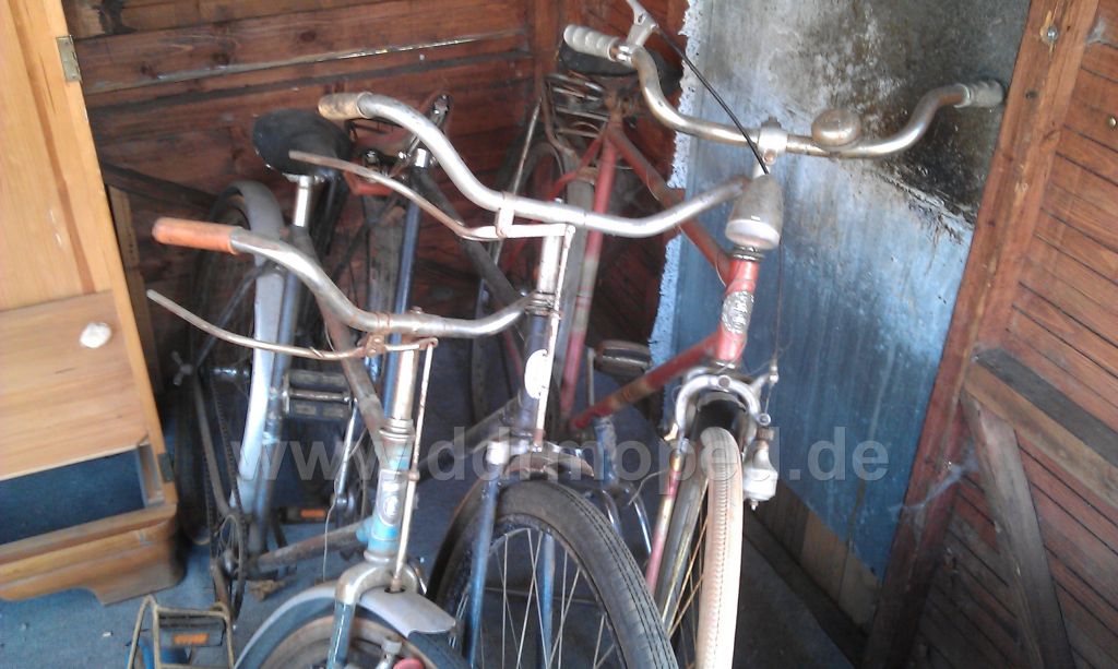 Mahlzeit die Herrschaften, ich war gestern in Nossen bei Dresden bei diesem Trödelhändler. Dort standen 3 alte Räder, von denen ich aber nicht weiss, ob die was sind oder nicht. Bzw. ob die überhaupt so alt sind, dass die jemanden interessieren könnten. (Ich hab doch von Fahrrädern keine Ahnung)  Kann ja aber sein, dass die jemand interessieren und für den Fall hab ich euch mal nen Bild gemacht Links - Diamant Mitte - Jagdring Rechts - Kurier