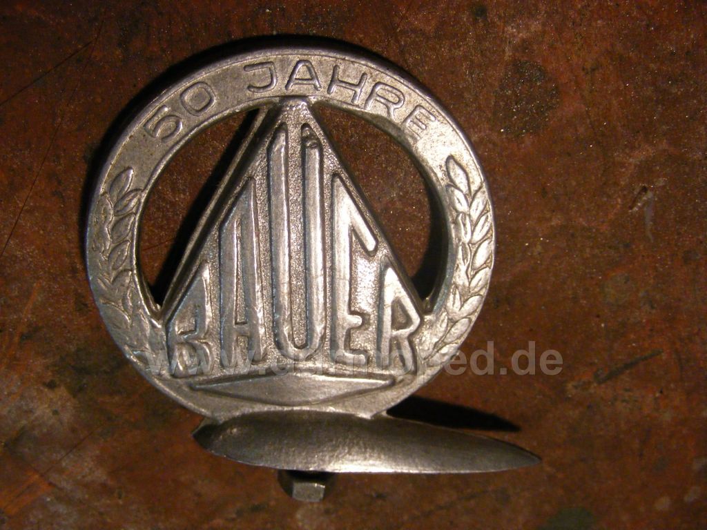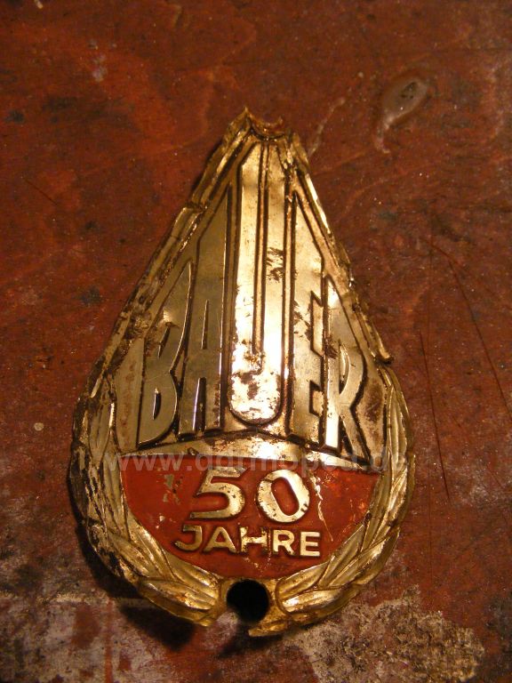 Hier die Bilder der BAUER-Teile: Alu-Schutzblechzeichen, Gewinde in Ordnung.