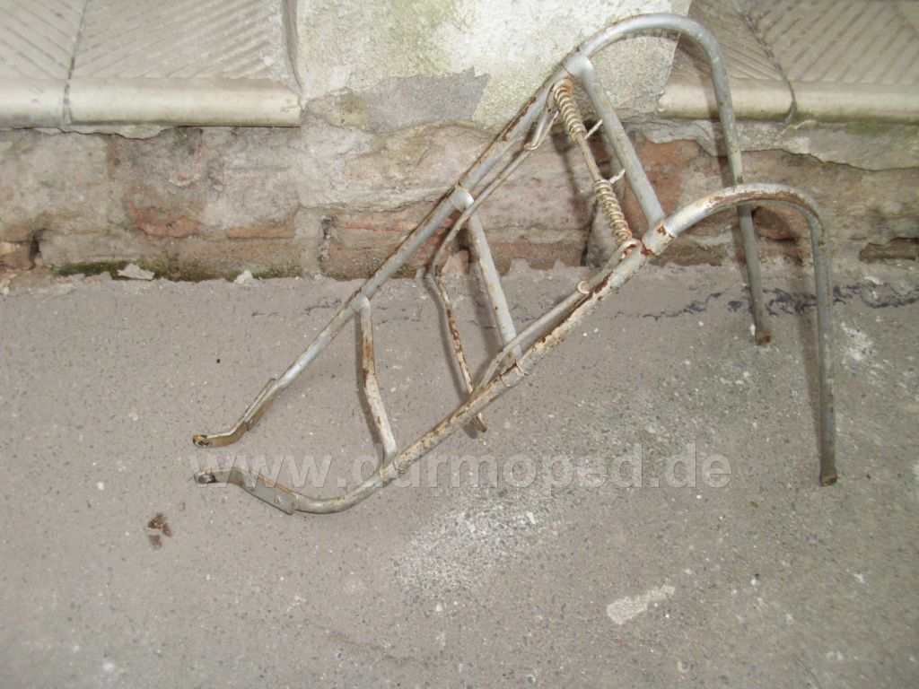 alter Damen-Sattel LLM, steinhart, ich weiß nicht, ob man den mit Lederfett wieder weich bekommt. Ohne Kloben und ohne die zwei unteren Feder-Schrauben die Mittelstrebe (zw. den Federn)