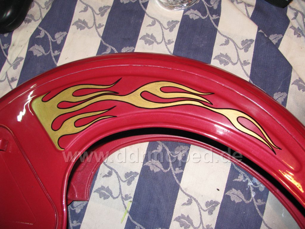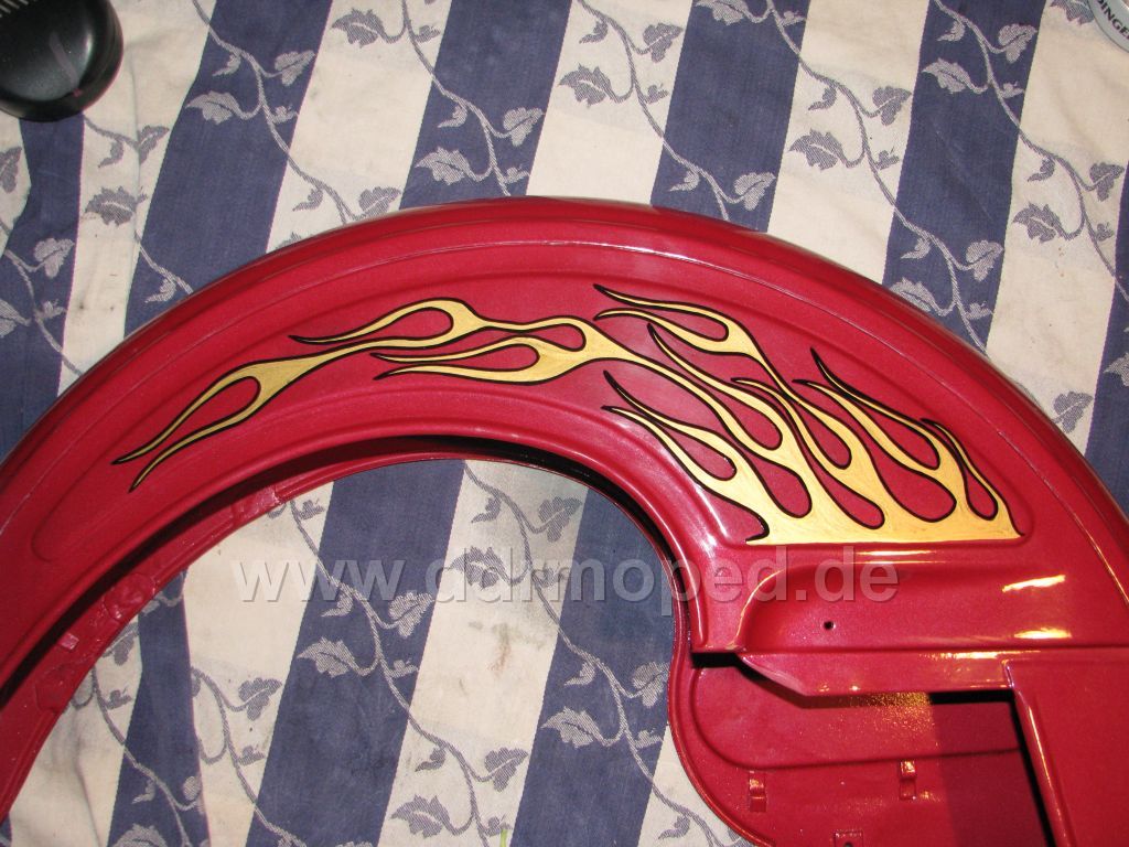 Handwerklich wieder top ausgeführt, aber ich befürchte das das Moped zu *kitschig* aussehen wird. Also mir wär es zu bunt, ist aber nur meine Meinung, mann muss es auch sehen wenn es zusammengebaut ist. Grüße