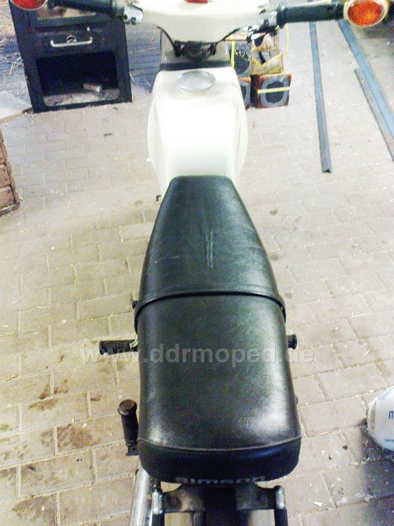 Nachdem ich am Montag mal n bisschen Testgefahren bin hat mich der Ergeiz nochmal gepackt. (bzw. ich hatte auch die letzten drei Wochen keinerlei Zeit). Nachdem ich gestern gar nicht aus dem Haus in die Werkstatt konnte Gesundheitsmäsig und es heute wieder n bisschen ging und ich die ganze woche nicht fähig bin auf Arbeit zu gehen. Ich habe den Austauschmotor wieder Ausgebaut und Zylinder und co wieder Abgebaut und auf den Originalen gebaut. Den Auspuff von ausen mit Stahlwolle abgerieben, und ich bin vom Ergebnis schon fast begeistert. Dann habe ich den Gaswirbel demontiert und schön mit Fett vollgeschmiert, das der leicht geht. Die Kabel von den Blinkern verlängert, weil das beide vorne wie abgefressen waren und das eine relativ kurz ist. Beide Kabelenden auch schön voll Lötzinn gemacht, damit sich das leichter in den Blinker schieben lässt.