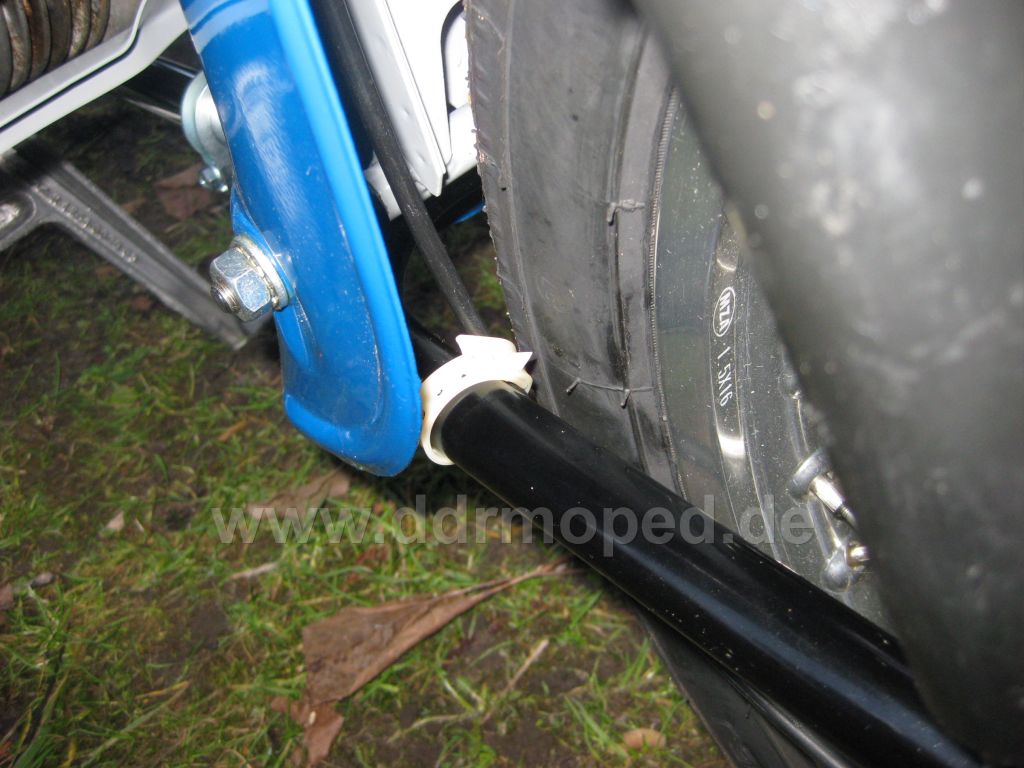 Bremszug ordnungsgemäss an der Schwinge fixiert .